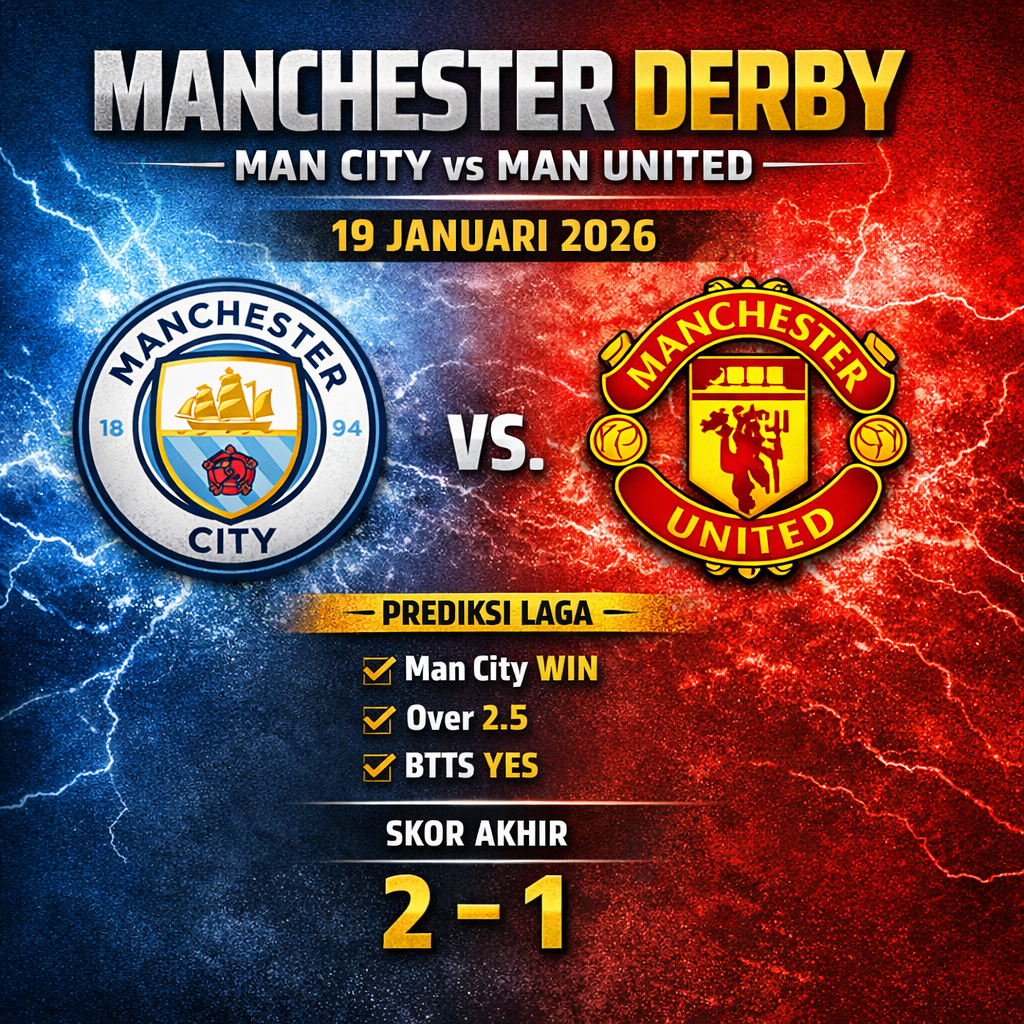 ANGKASA BOLA – Derby Manchester kembali tersaji di panggung Premier League musim 2025/2026. Manchester United dijadwalkan menjamu Manchester City di Old Trafford, Sabtu, 17 Januari 2026, dengan kick-off pukul 19.30 WIB.